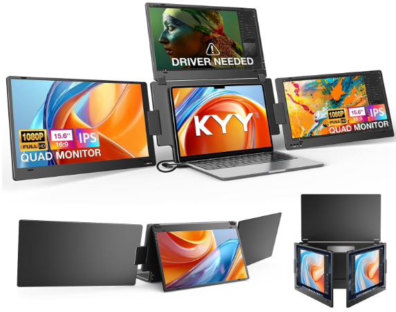| Description: | KYY Triple Screen, Aluminum Alloy, Auto Rotation Laptop Monitor Extender For 12" – 17.3†Laptops | |||