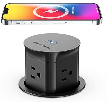 | Description: | Jgstkcity Pop Up Outlet With 15W Wireless Charger, 4 Outlets 15A, Splash Resistant, 3 Inch Desk Hole Power Grommet, Space Saver Pop Up Power Outlet | |||