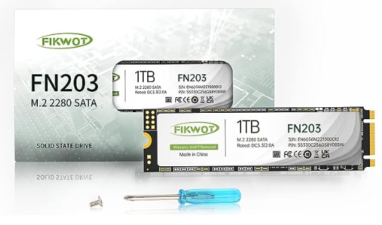 | Description: | Fikwot 1TB M.2 SATA SSD - SLC Cache 3D NAND TLC SATA III 6Gb/s M.2 2280 NGFF Internal Solid State Drive | |||