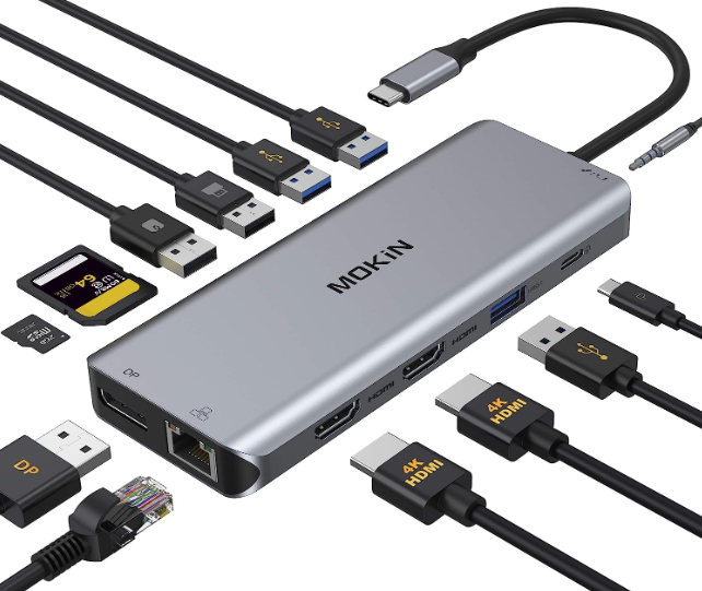 | Description: | MOKiN 13-in-1 Triple Display Docking Station W/ Dual HDMI 4K, DP, PD Charger, Gigabit Ethernet, 5x USB Ports, SD / TF Card Reader & Mic / Audio | |||