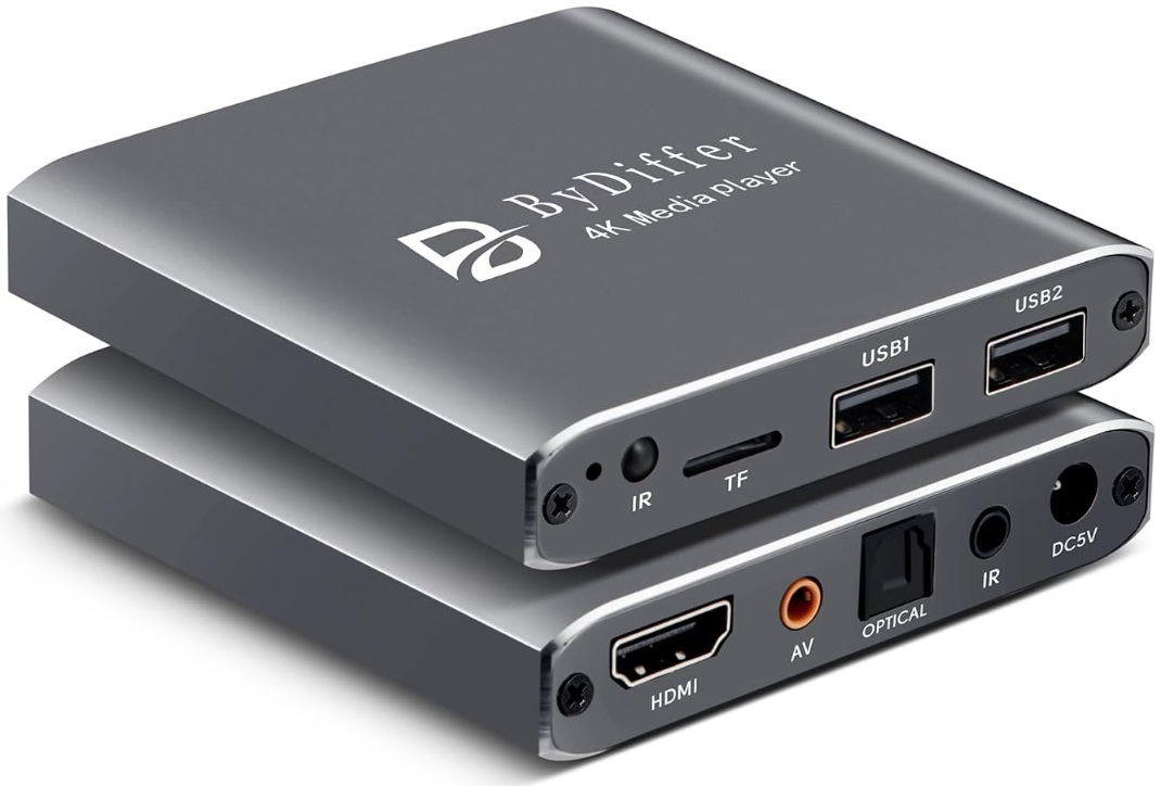 | Description: | ByDiffer 4K Ultra HD Digital Media Player For USB Drive / Micro SD Card, H.265 / HEVC, Digital Signage, Auto Playback & HDMI/AV/Optical Output, Grey | |||