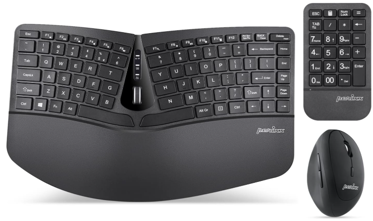 | Description: | Perixx 3-in-1 Wireless Compact Ergonomic Keyboard W/ Vertical Mouse & Numeric Keypad, US English | |||