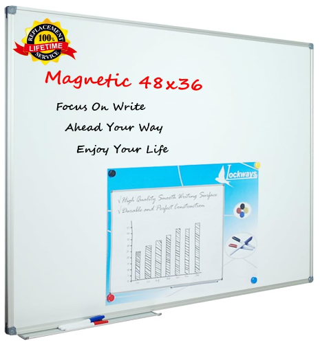 Description:Lockways Magnetic White Board Dry Erase Board 48" X 36" W/ Silver Aluminium Frame, Detachable Aluminum Marker Tray, Set Of 3x Dry Erase Markers & 8x Magnets