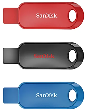 | Description: | SanDisk Cruzer Snap USB Flash Drives, 32GB, 3-Pack, Black, Blue & Red | |||