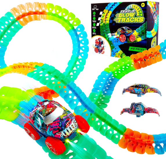 | Description: | USA Toyz Zero-G Glow In The Dark Flexible Rack Track Set W/ Suction Cuts & 2x Toy Cars, 210pcs | |||