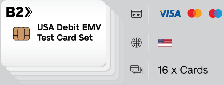 | Description: | B2 USA Debit EMV Test Card Set, 16x Cards | |||