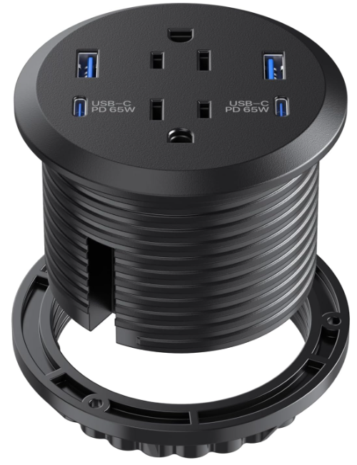 | Description: | Jgstkcity Desktop Power Grommet W/ PD 20W, USB-C, 2x Outlets & 4x USB Ports, 6ft Cord, Black | |||