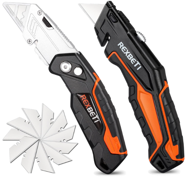 | Description: | ‎Rexbeti Heavy-Duty Retractable Box Cutter Utility Knife W/ 10x Extra Blades, 2-Pack | |||
