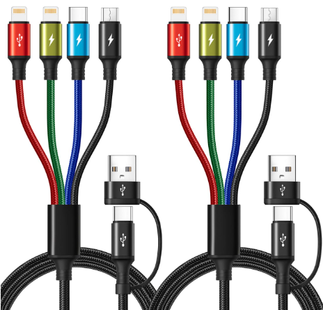 | Description: | Minlu 6-in-1 Braided USB A/C to Lightning/Type C/Micro USB Ports Universal Multiple Charger Cable, 6ft, 2-Pack | |||