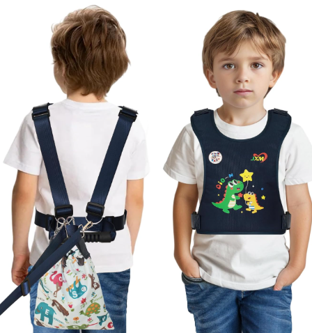 Description:JXM Safety Harness W/ Quick Grab Handle, Pouch & Adjustable Tether Leash For Medium Child Height 3'9" - 5'3", Navy Blue