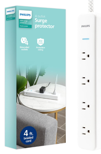 | Description: | Philips 4-Outlet Surge Protector Power Strip W/ 4ft Braided Extension Cord, White | |||