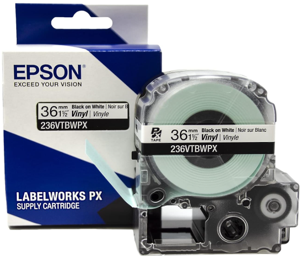 | Description: | Epson LabelWorksBlack On White Vinyl Industrial Label Maker Tape, 1.5" X 22.9ft | |||