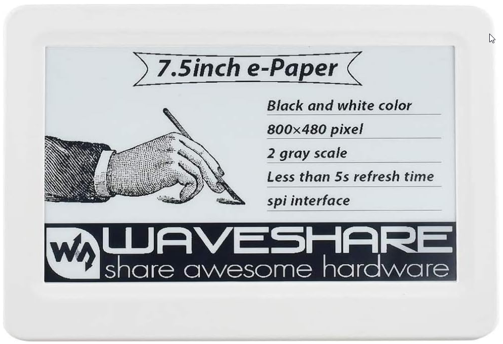 | Description: | Waveshare 7.5" Array MFC-Powered E-Paper Black / White Wireless E-Ink Screen | |||