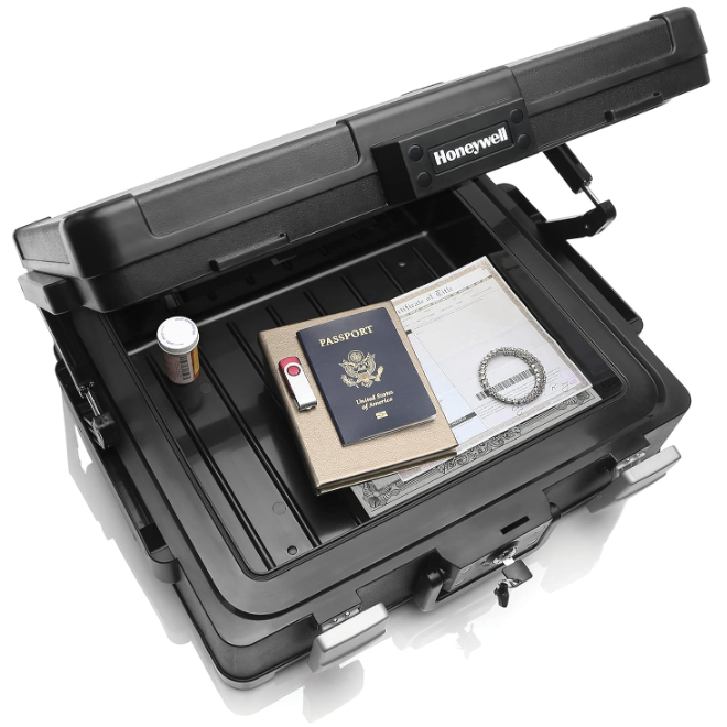 | Description: | Honeywell 0.39 Cu Water & Fireproof Chest, 17.2" X 20" X 7.3" | |||