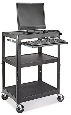 | Description: | Uline Adjustable Height Workstation Computer Cart W/ Slide-Out Keyboard Tray, 3x Outlets, 4" Rubber Swivel Locking Casters, 34" X 20" X 29", Black | |||