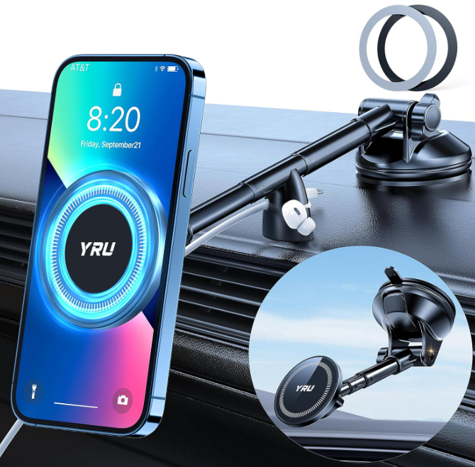 | Description: | YRU Suction Cup Magnetic Car Mount Phone Holder For IPhone 13, 14, 15 & Samsung Pro Max, Black | |||