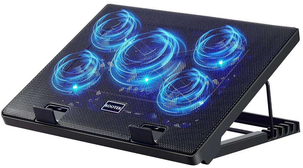 | Description: | Kootek Laptop Cooling Pad W/ 5x Quiet Fans, LED Lights, 2x USB 2.0 Ports & Height Adjustable Angle, Blue | |||