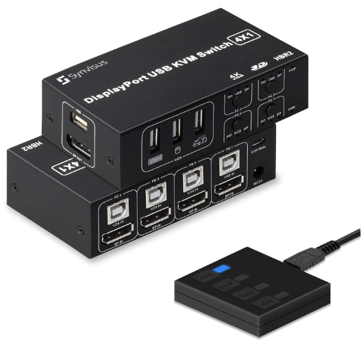 | Description: | Synvisus DisplayPort KVM Switch 4 Port 3D UHD 4K@60Hz, 2K@120Hz 4 In 1 Out USB And DP1.2 KVM Switcher, With 4 USB Cables | |||