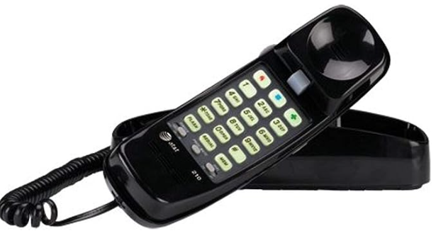 | Description: | AT&T 210 Basic Trimline Corded Phone, No AC Power Required, Wall-Mountable, Black | |||