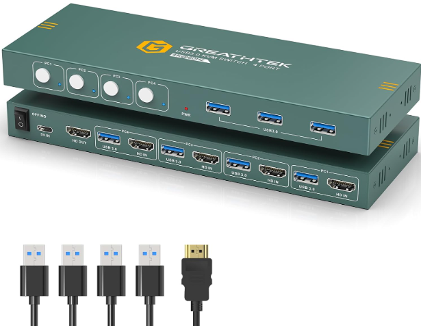 Description:Greathtek USB3.0 KVM Switch,HDMI 4K@60Hz For 4x Computers W/ 3x USB 3.0 Ports