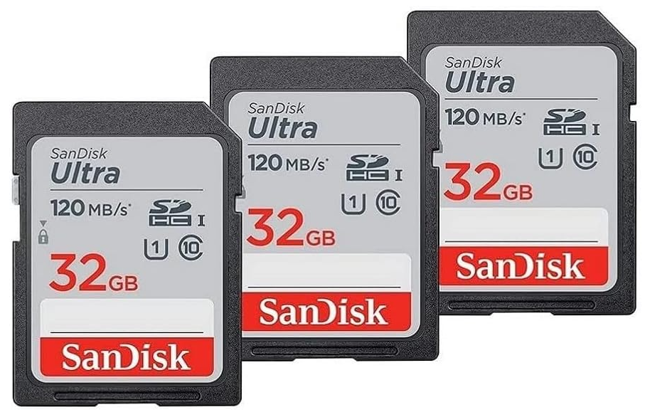 | Description: | SanDisk 32GB Ultra SDHC UHS-I Memory Card (3x32GB), 3-Pack | |||