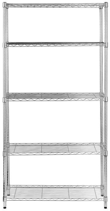| Description: | Amazon Basics Adjustable 5-Shelf Heavy-Duty Wire Storage Shelving Unit, 36" L X 14" W X 72" H, Chrome Silver | |||