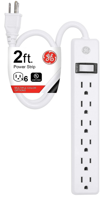 | Description: | GE 6-Outlet Power Strip W/ 2ft Extension Cord, White | |||