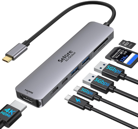 | Description: | Selcore & S-Global 7-in-1 USB-C Dongle Hub W/ HDMI SD/TF Card Reader, USB C Data Port,100W PD, And 2 USB 3.0 Adpater | |||